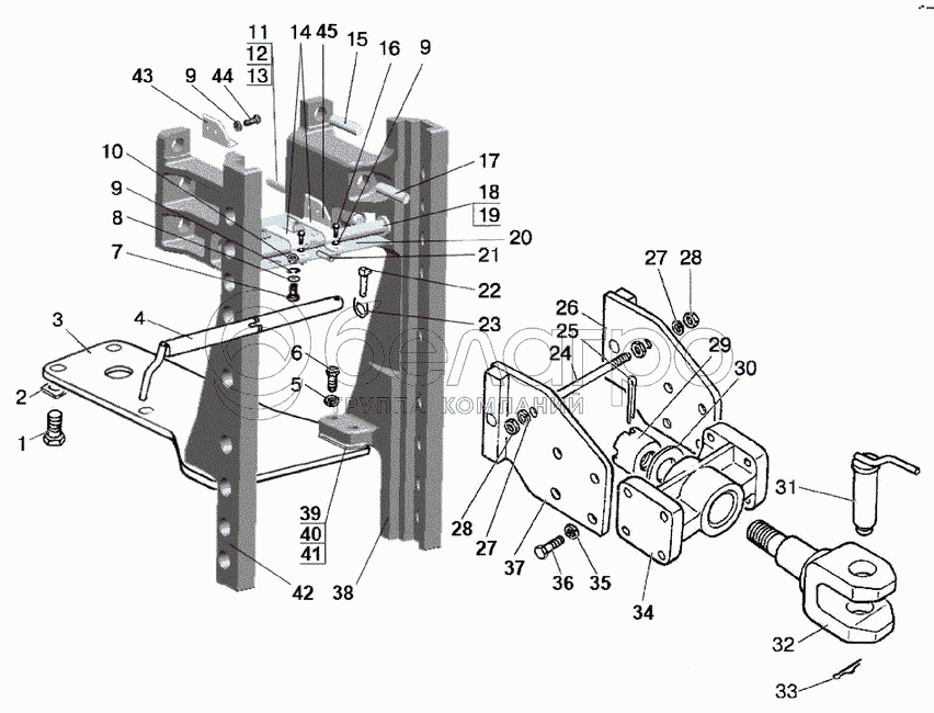 Каталог запасных частей к технике: МТЗ-1021.3. Тягово-сцепное устройство (литые боковины)