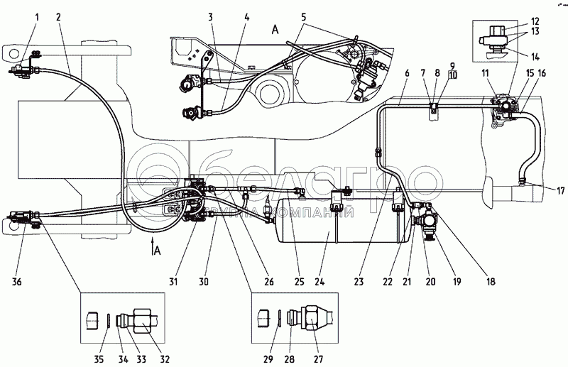 Каталог запасных частей к технике: МТЗ-1025.4. Пневмопривод ( «сухие» тормоза )