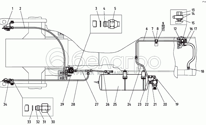 Каталог запасных частей к технике: МТЗ-1025.4. Пневмопривод («мокрые» тормоза)