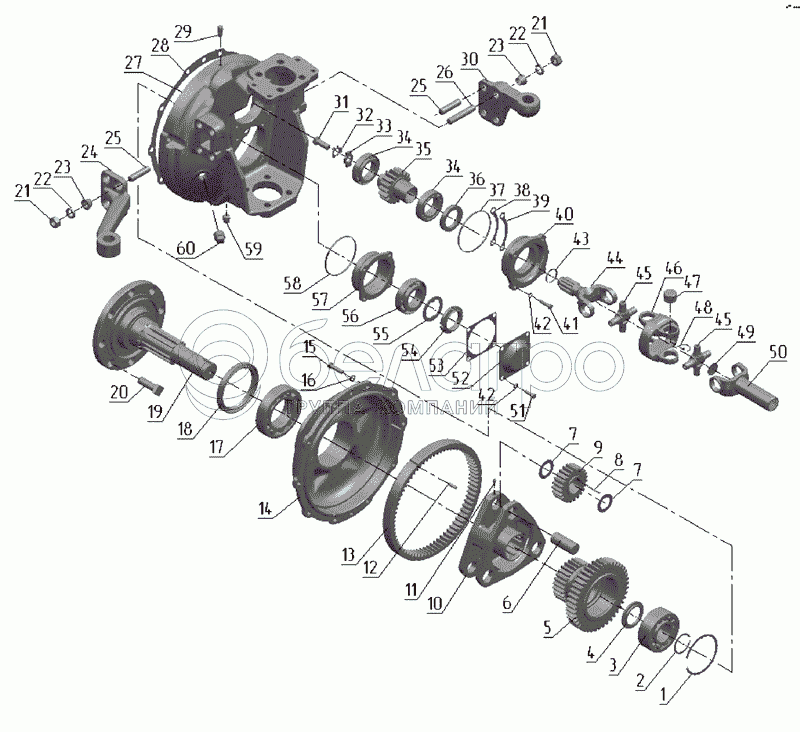 Каталог запасных частей к технике: МТЗ-1025.4. Редуктор конечной передачи переднего ведущего моста