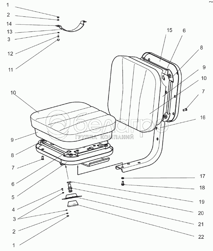 Каталог запасных частей к технике: МТЗ-1025.4. Сиденье дополнительное