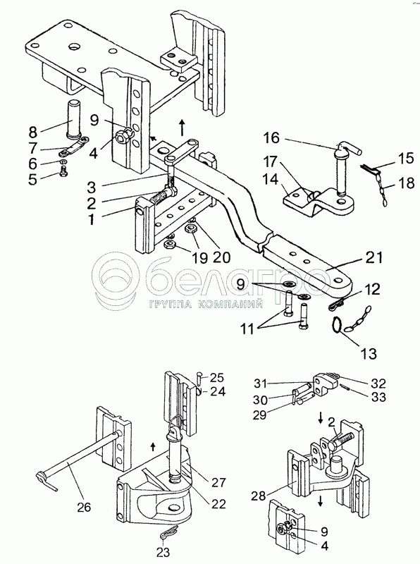 Каталог запасных частей к технике: МТЗ-1025.4. Тягово-сцепное устройство (варианты комплектации)