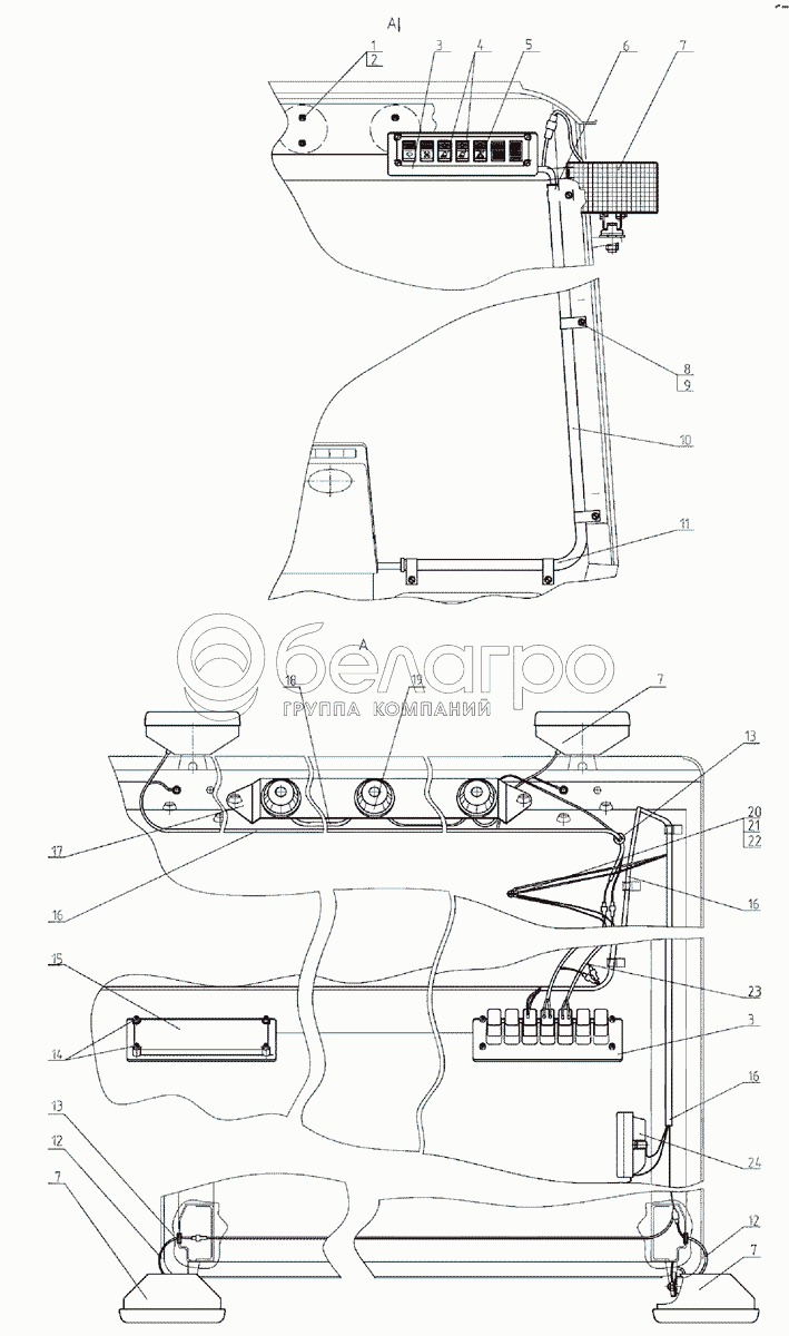 Каталог запасных частей к технике: МТЗ-1025.4. Установка фар рабочих