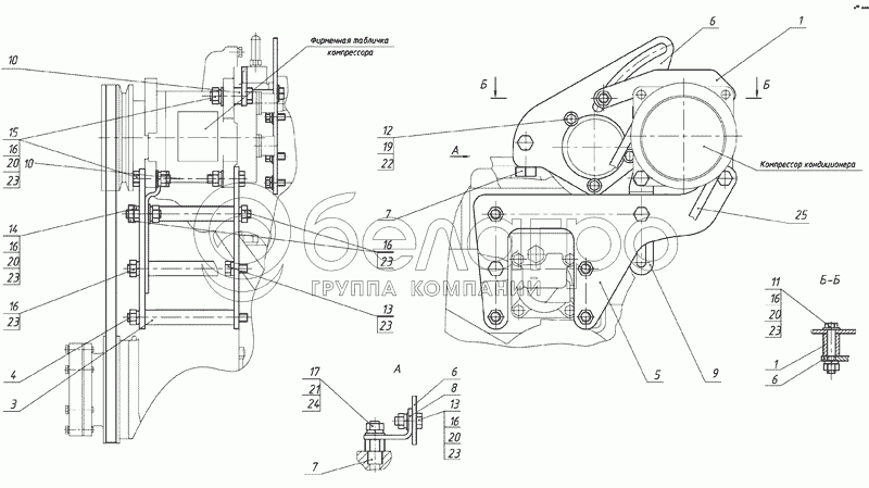 Каталог запасных частей к технике: МТЗ-1025.4. Установка компрессора