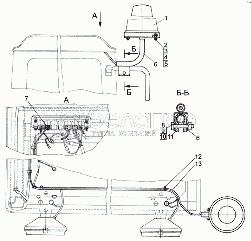 Каталог запасных частей к технике: МТЗ-1025.4. Установка маяка сигнального