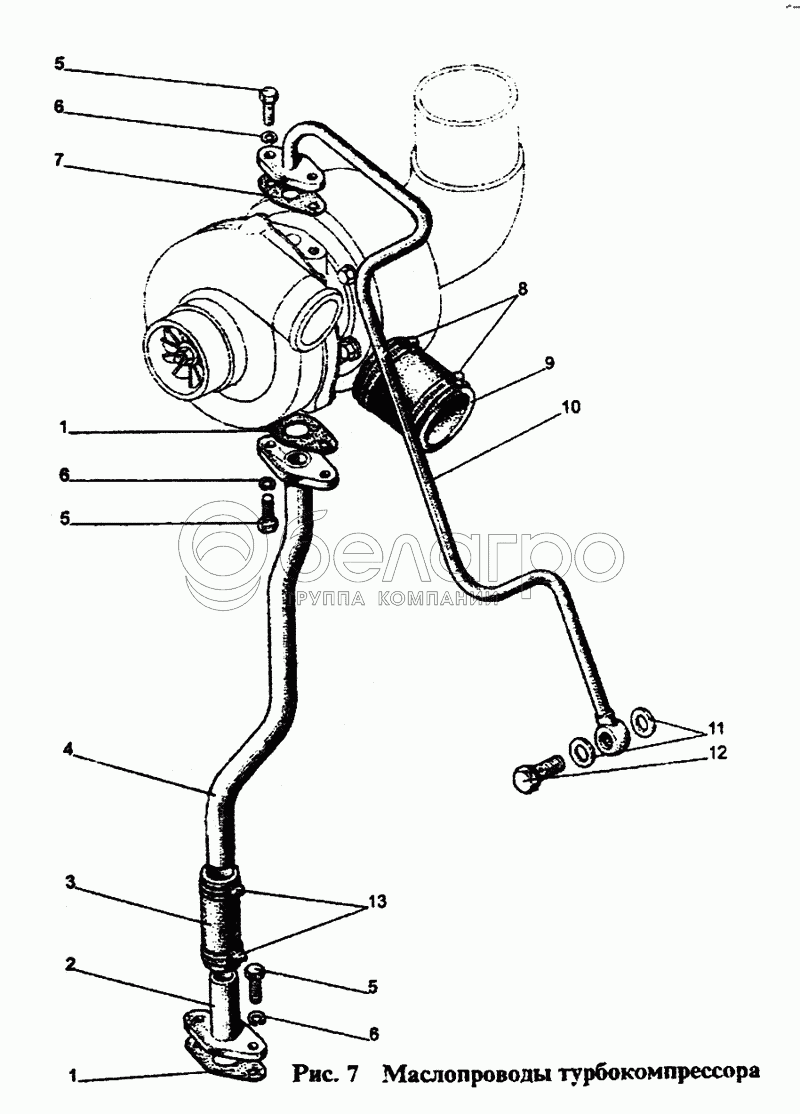 Каталог запасных частей к технике: МТЗ-1221. Маслопроводы турбокомпрессора