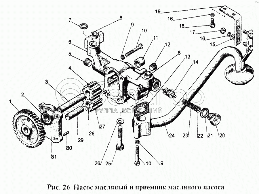 Каталог запасных частей к технике: МТЗ-1221. Насос масляный и приемник масляного насоса