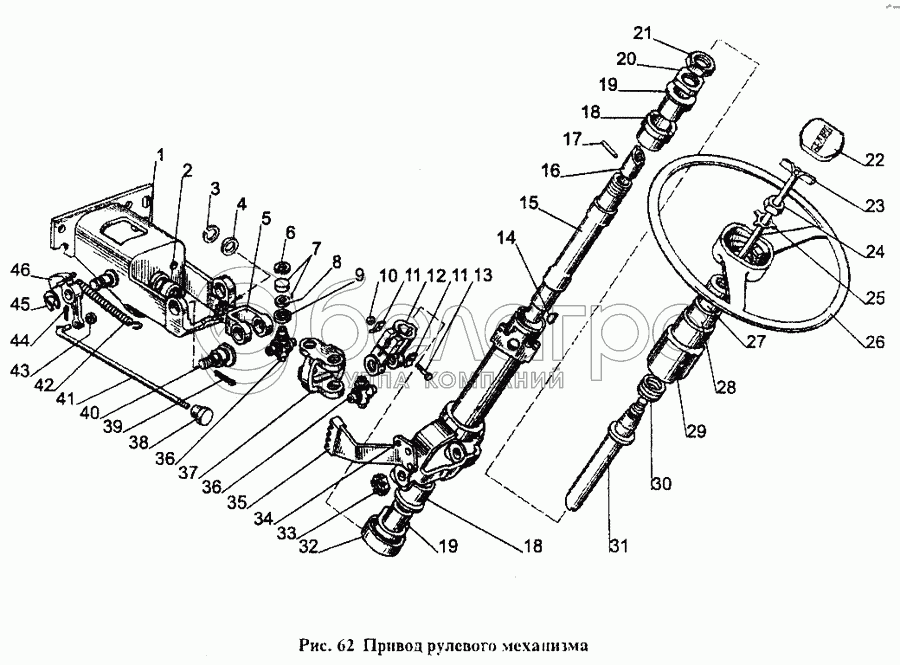 Каталог запасных частей к технике: МТЗ-1221. Привод рулевого механизма
