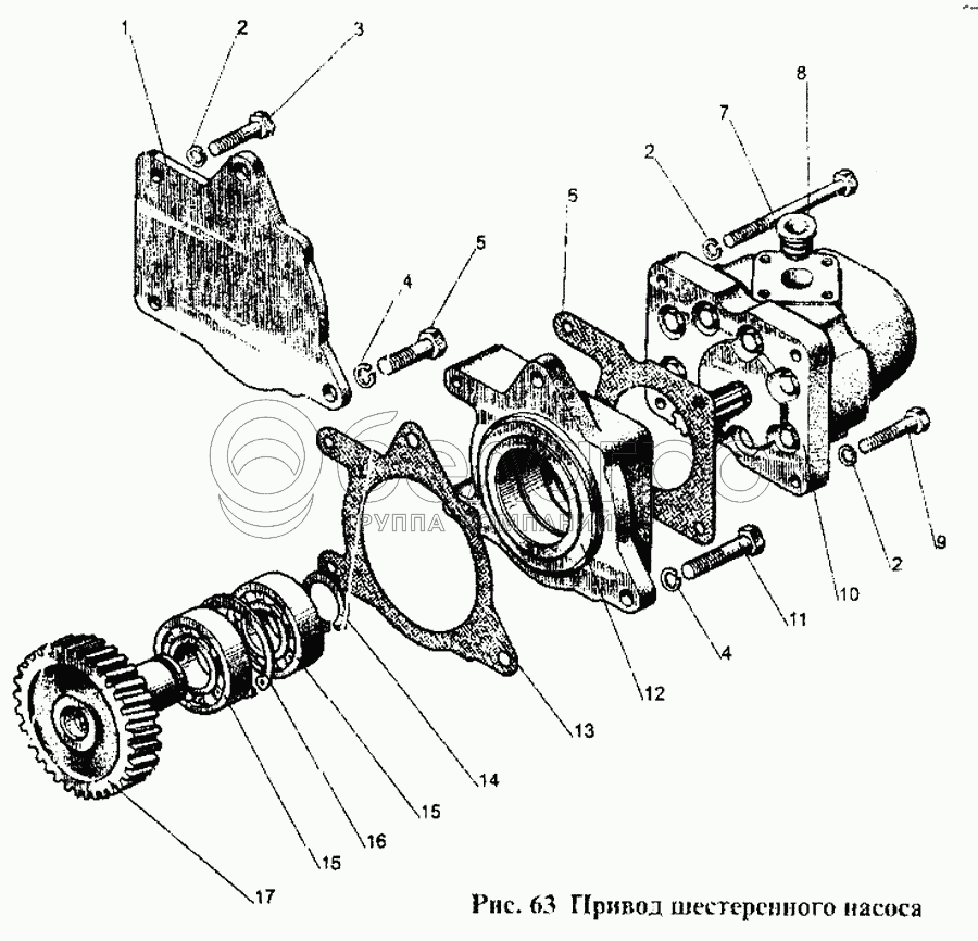 Каталог запасных частей к технике: МТЗ-1221. Привод шестеренного насоса