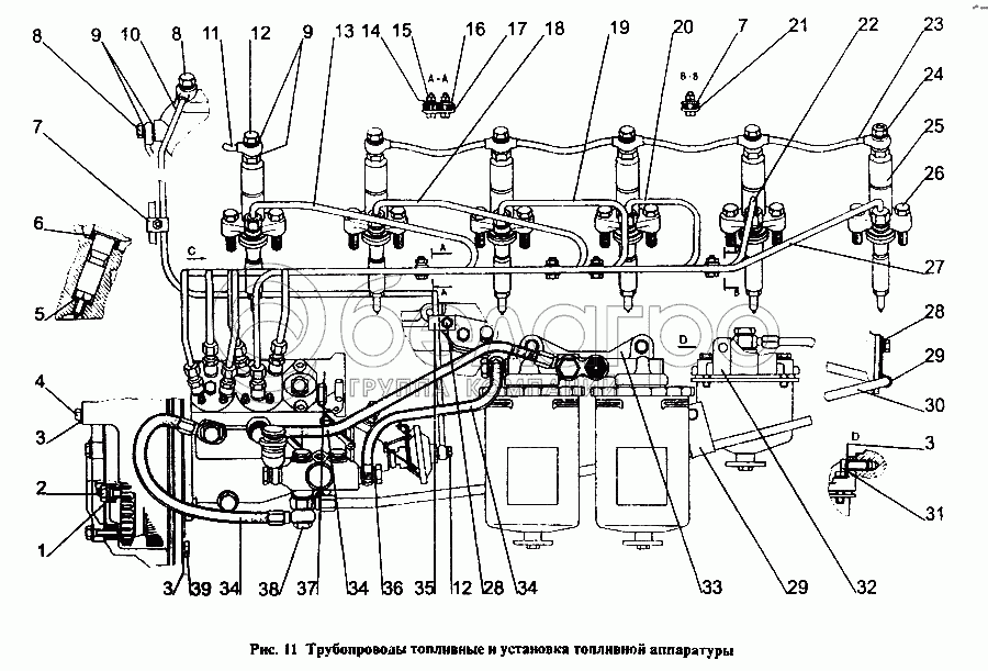Каталог запасных частей к технике: МТЗ-1221. Трубопроводы топливные и установка топливной аппаратуры