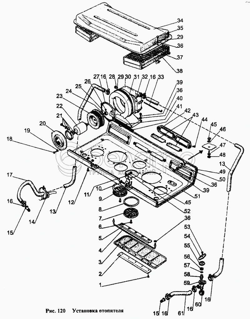 Каталог запасных частей к технике: МТЗ-1221. Установка отопителя