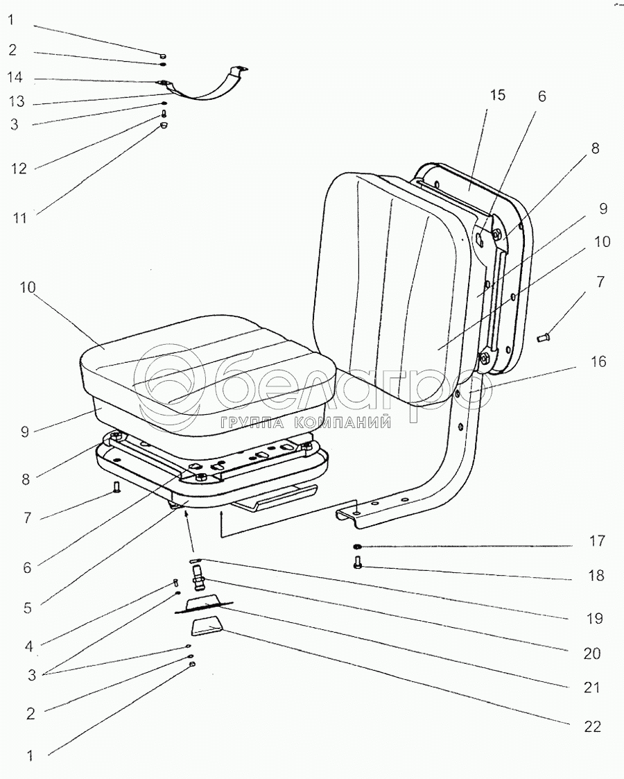 Каталог запасных частей к технике: МТЗ-1221.4. Дополнительное сиденье