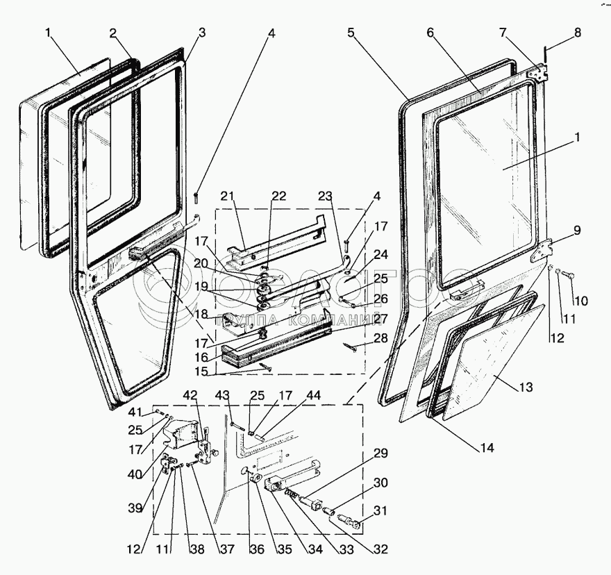 Каталог запасных частей к технике: МТЗ-1221.4. Двери кабины