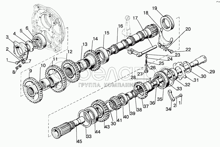 Каталог запасных частей к технике: МТЗ-1221.4. Коробка передач. Вал промежуточный