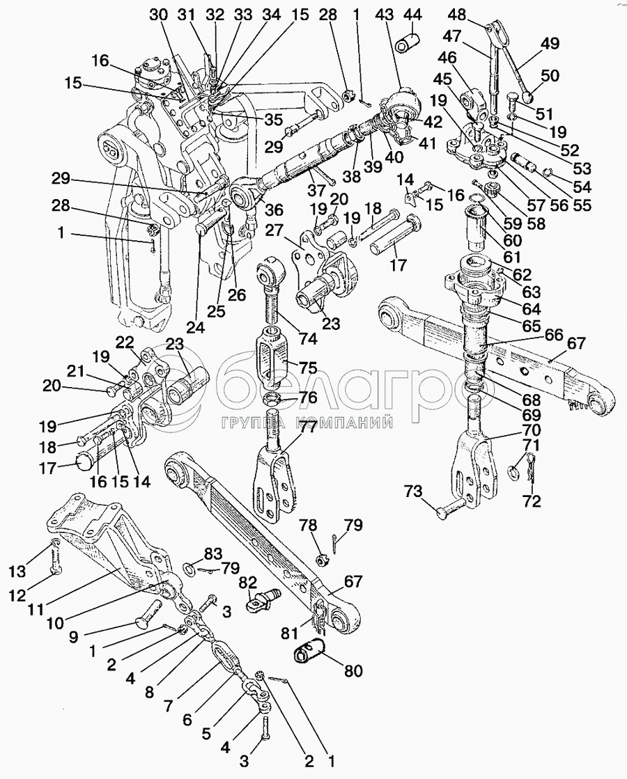 Каталог запасных частей к технике: МТЗ-1221.4. Навесное устройство с гидроподъемником