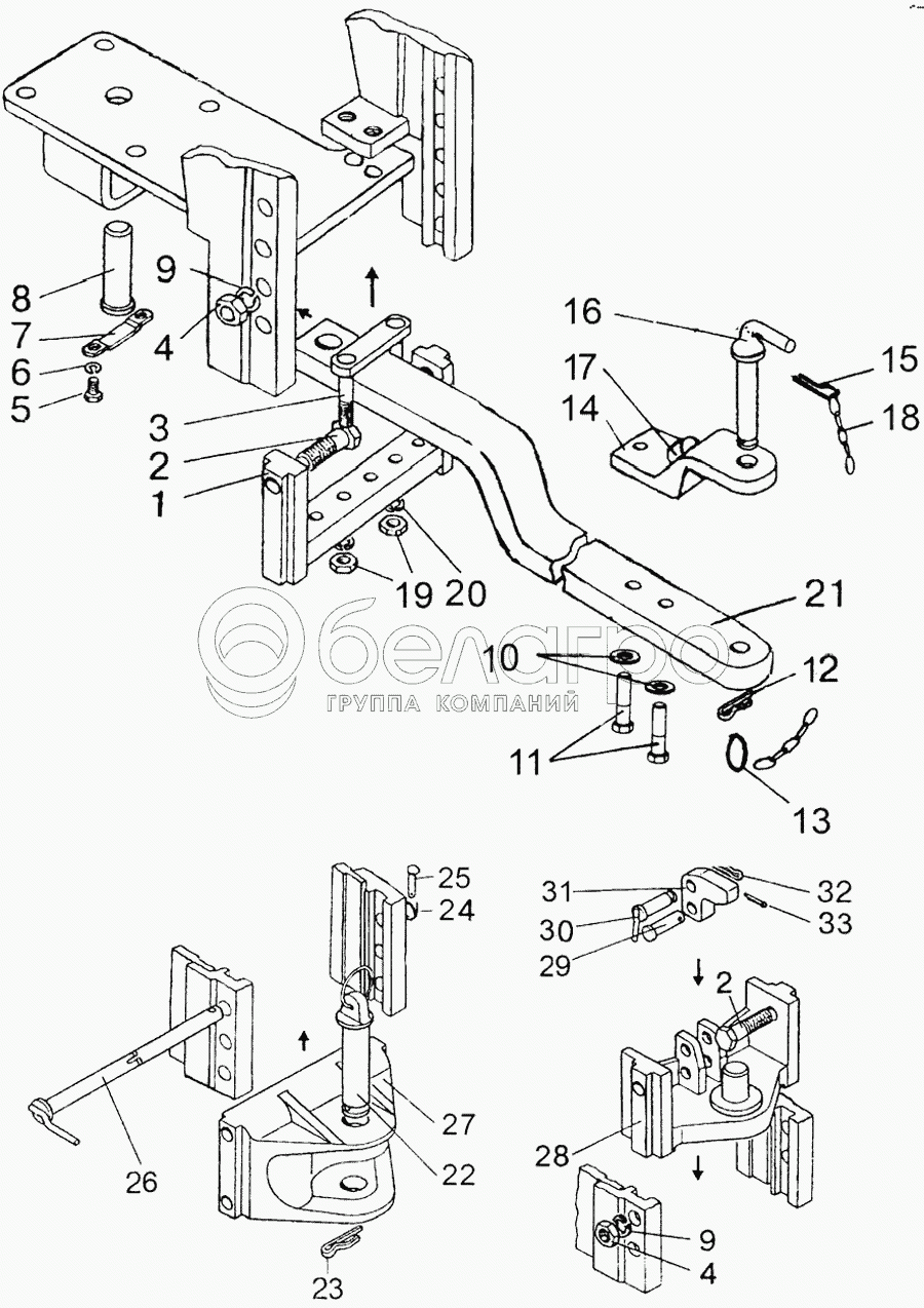 Каталог запасных частей к технике: МТЗ-1221.4. Тягово-сцепное устройство (варианты комплектации)