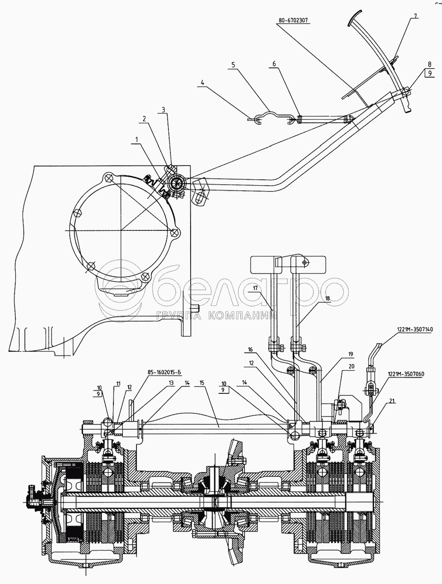 Каталог запасных частей к технике: МТЗ-1221.4. Управление «мокрыми» тормозами