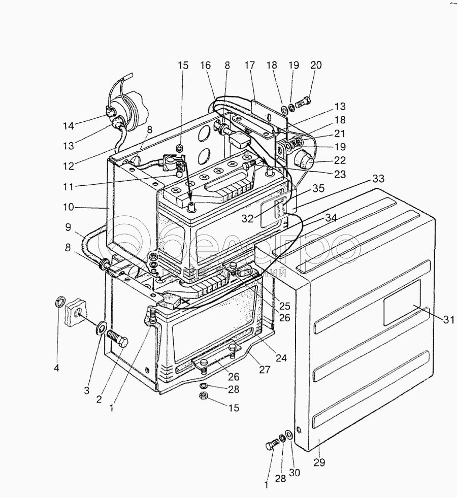 Каталог запасных частей к технике: МТЗ-1221.4. Установка батарей аккумуляторных