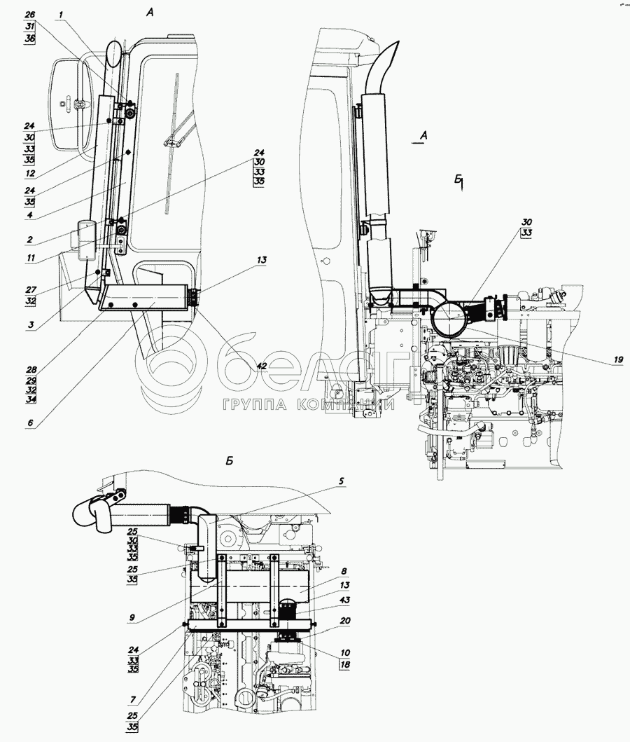 Каталог запасных частей к технике: МТЗ-1221.4. Установка глушителя