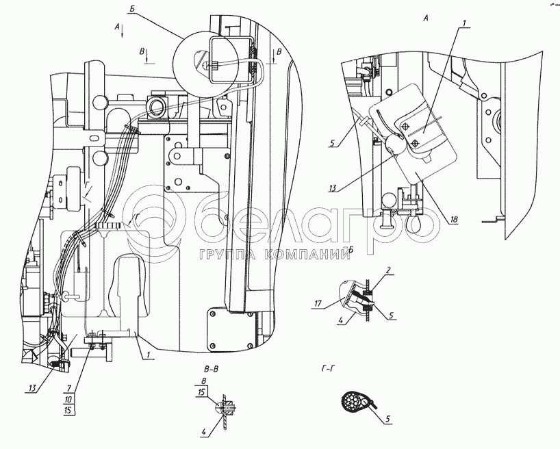 Каталог запасных частей к технике: МТЗ-1221.4. Установка стеклоомывателя