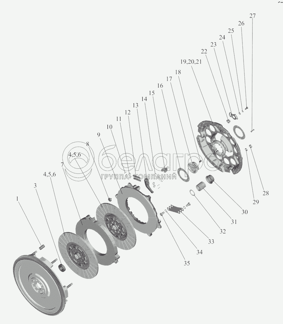 Каталог запасных частей к технике: МТЗ-1221.4. Установка сцепления 1523Д-1005009