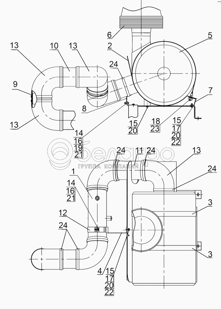 Каталог запасных частей к технике: МТЗ-1221.4. Установка воздухоочистителя