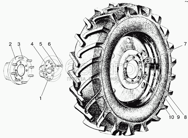 Каталог запасных частей к технике: МТЗ-1221.4. Колеса задние ведущие. Ступицы задних колес