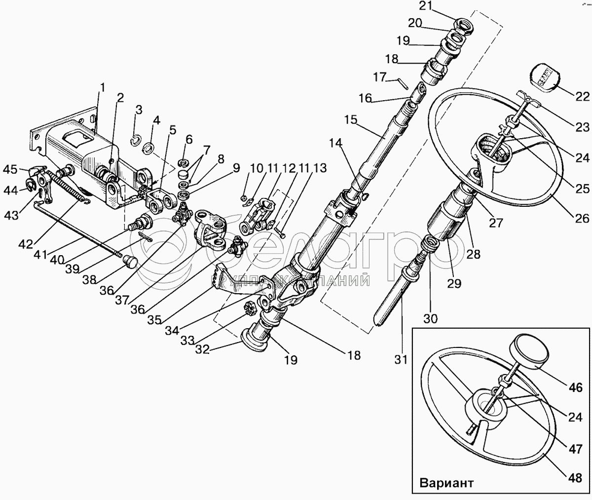 Каталог запасных частей к технике: МТЗ-1221.4. Колонка рулевая