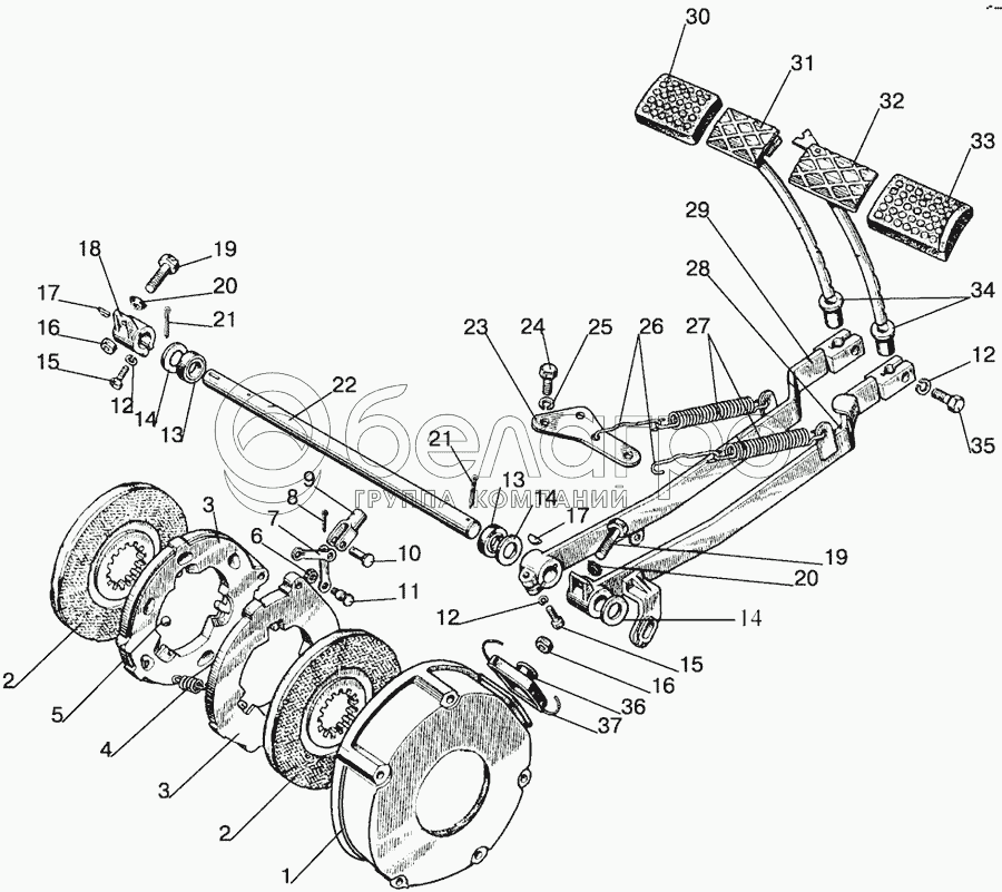 Каталог запасных частей к технике: МТЗ-1221.4. Тормоза. Управление тормозами