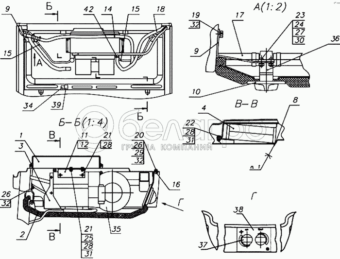 Каталог запасных частей к технике: МТЗ-1221.4. Установка отопителя-охладителя