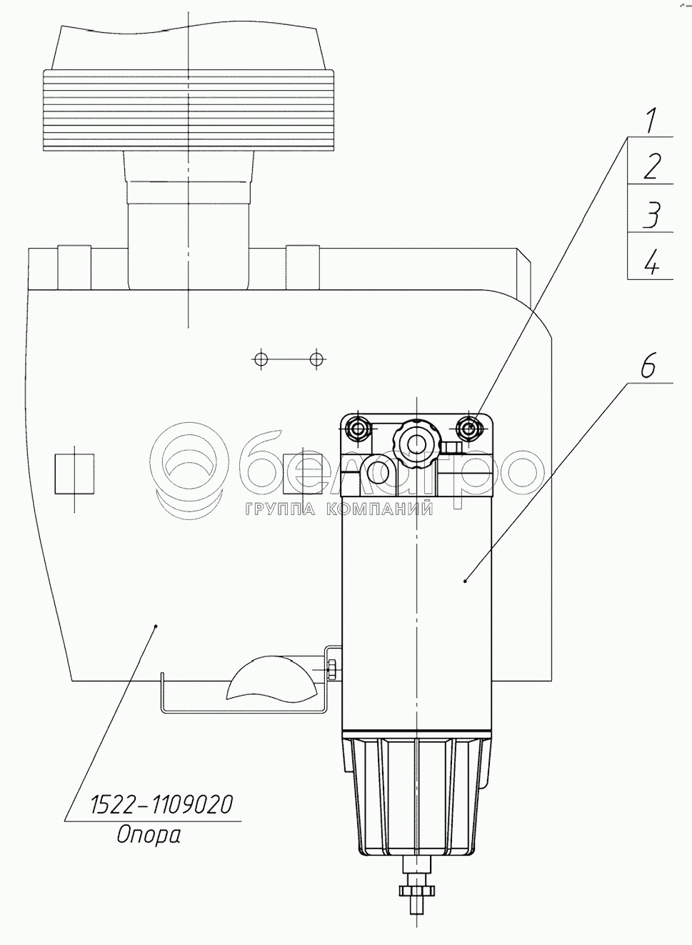 Каталог запасных частей к технике: МТЗ-1221.4. Установка топливного фильтра