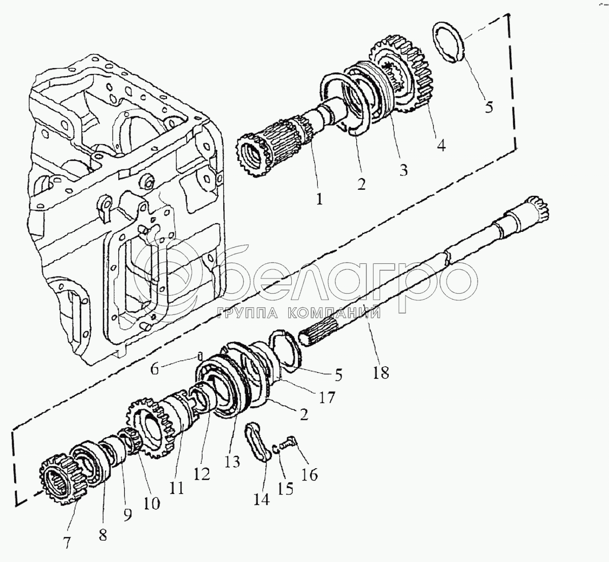 Каталог запасных частей к технике: МТЗ-1221.4. Вал блока шестерен (24F+12R)
