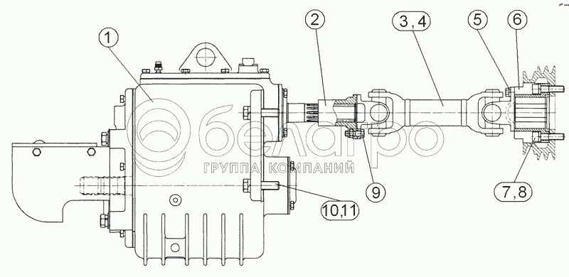Каталог запасных частей к технике: МТЗ-1221.4. Вал отбора мощности передний