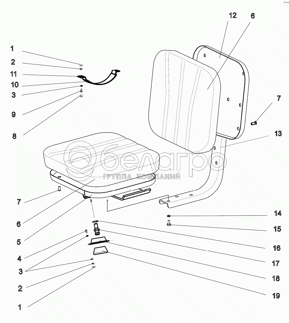 Каталог запасных частей к технике: МТЗ-1221.5. Сиденье дополнительное
