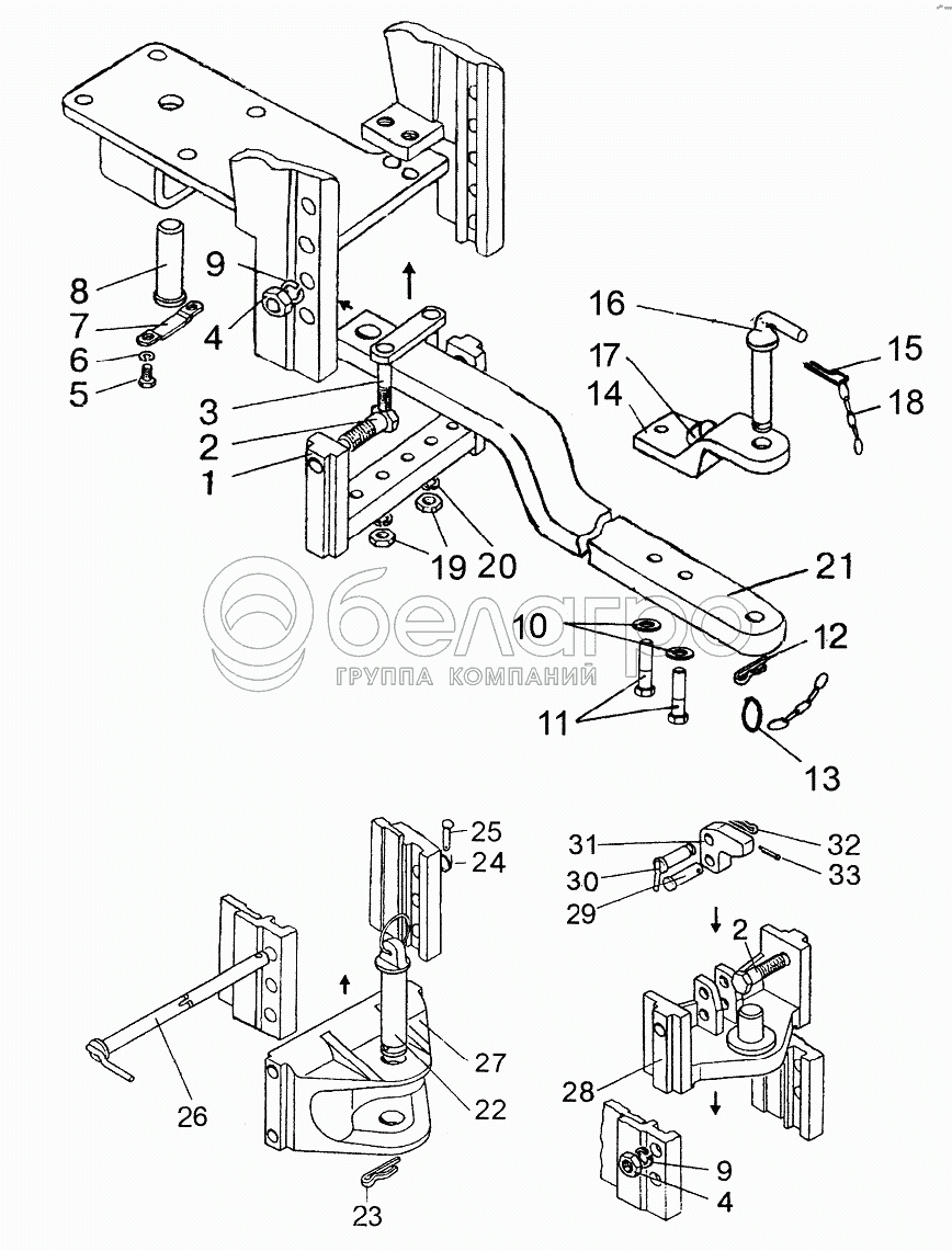 Каталог запасных частей к технике: МТЗ-1221.5. Тягово-сцепное устройство (варианты комплектации)
