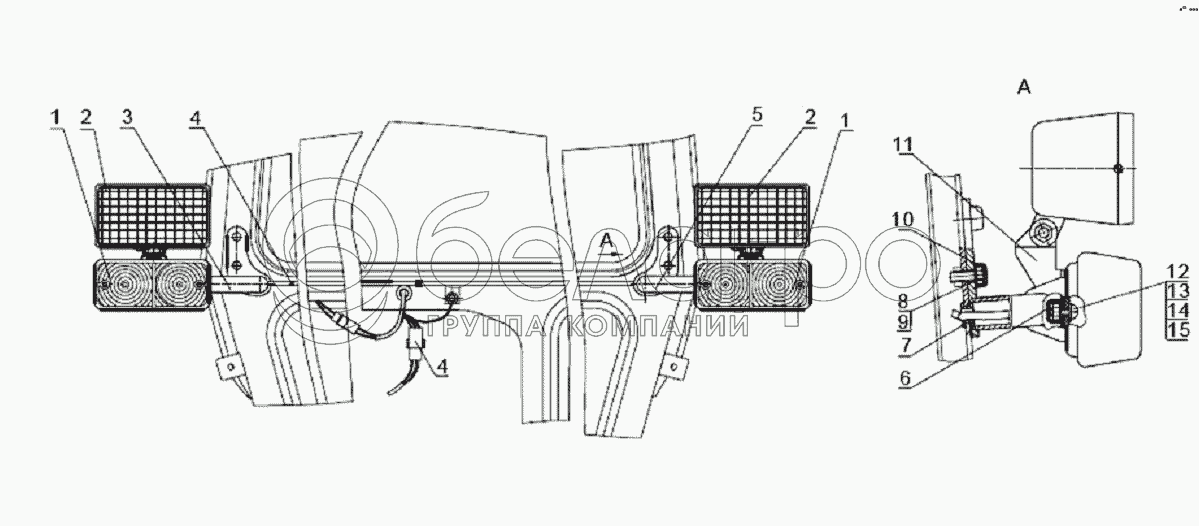 Каталог запасных частей к технике: МТЗ-1221.5. Установка фонарей передних