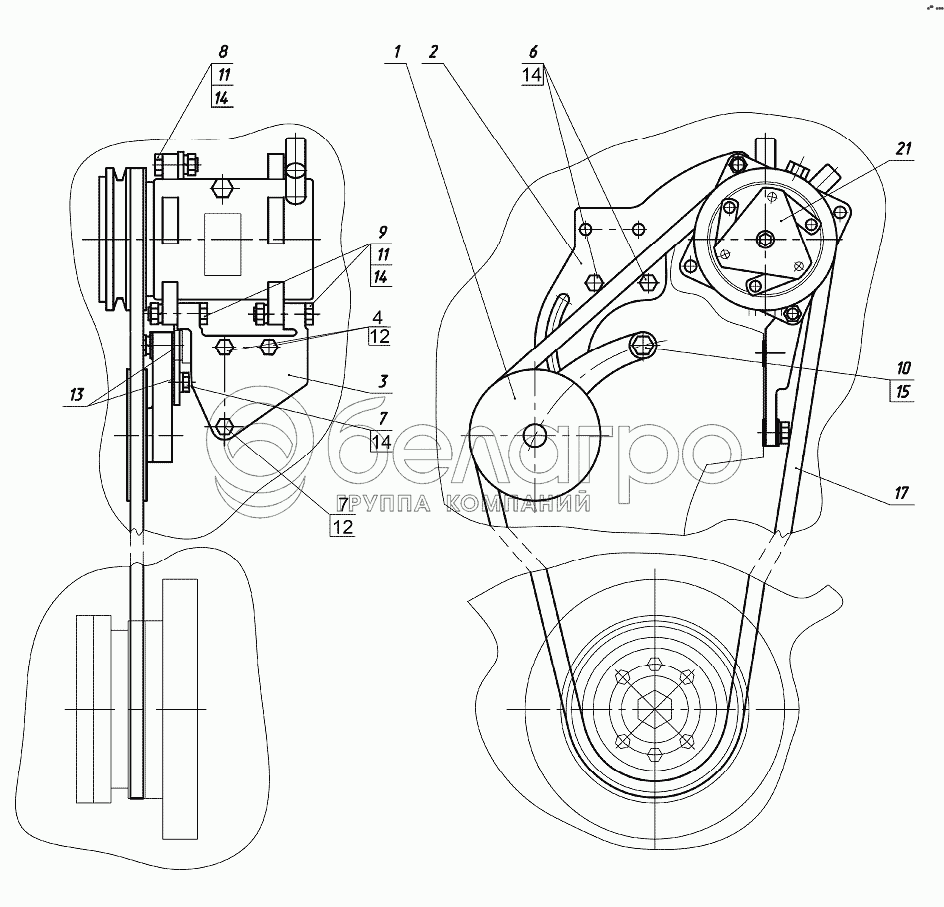 Каталог запасных частей к технике: МТЗ-1221.5. Установка компрессора