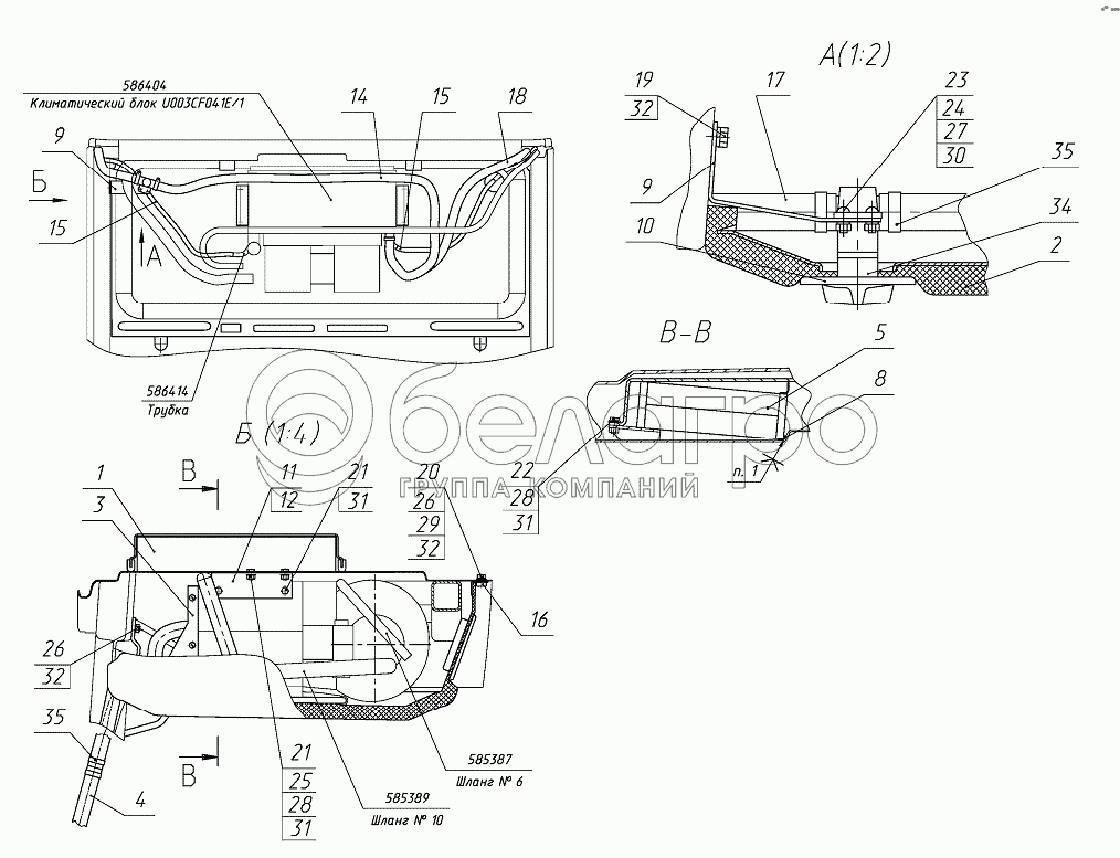 Каталог запасных частей к технике: МТЗ-1221.5. Установка отопителя-охладителя
