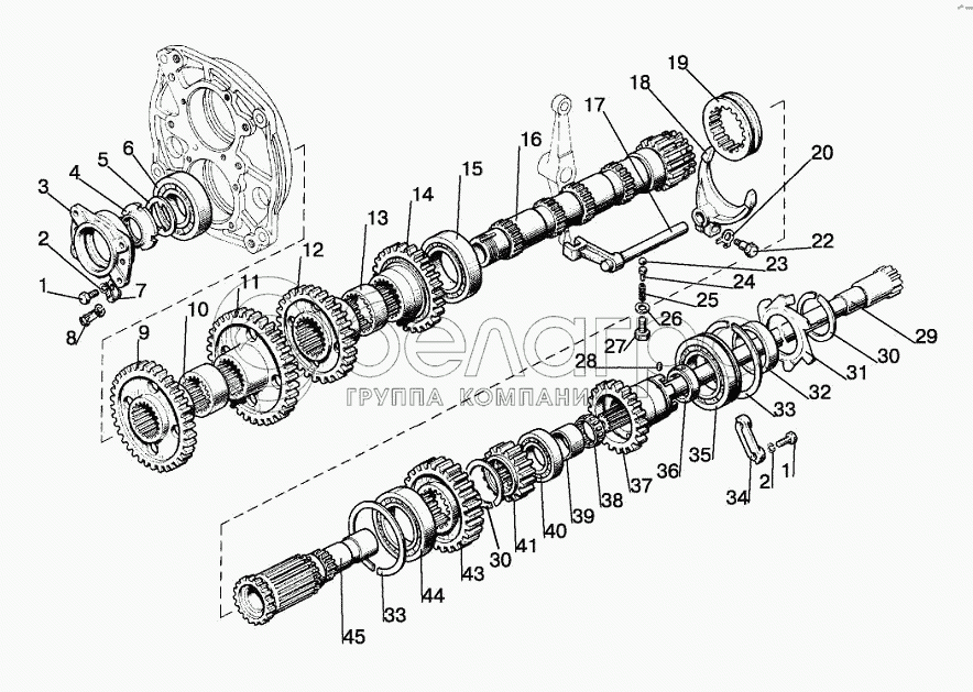 Каталог запасных частей к технике: МТЗ-1221.5. Вал промежуточный (16F+8R)