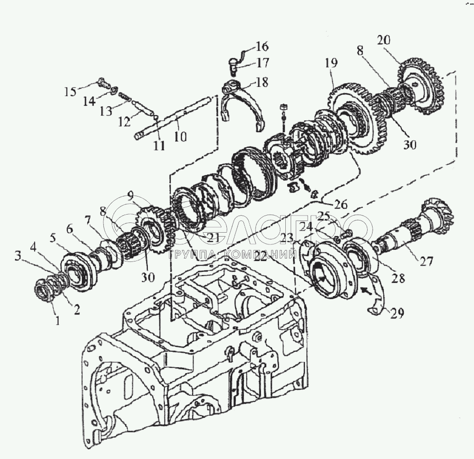Каталог запасных частей к технике: МТЗ-1221.5. Вал вторичный (24F+12R)