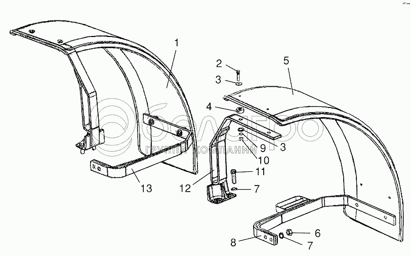 Каталог запасных частей к технике: МТЗ-1221 (2009). Крылья передних колес