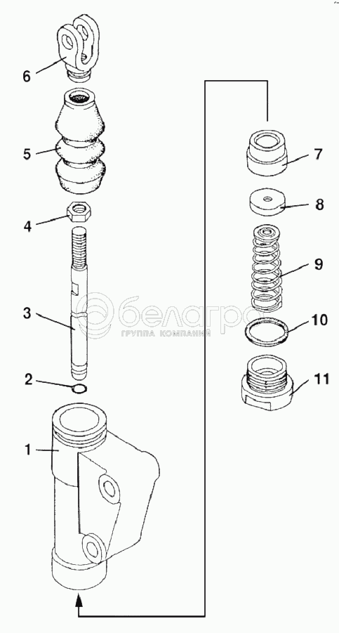 Каталог запасных частей к технике: МТЗ-1221 (2009). Цилиндр главный (на реверсе)