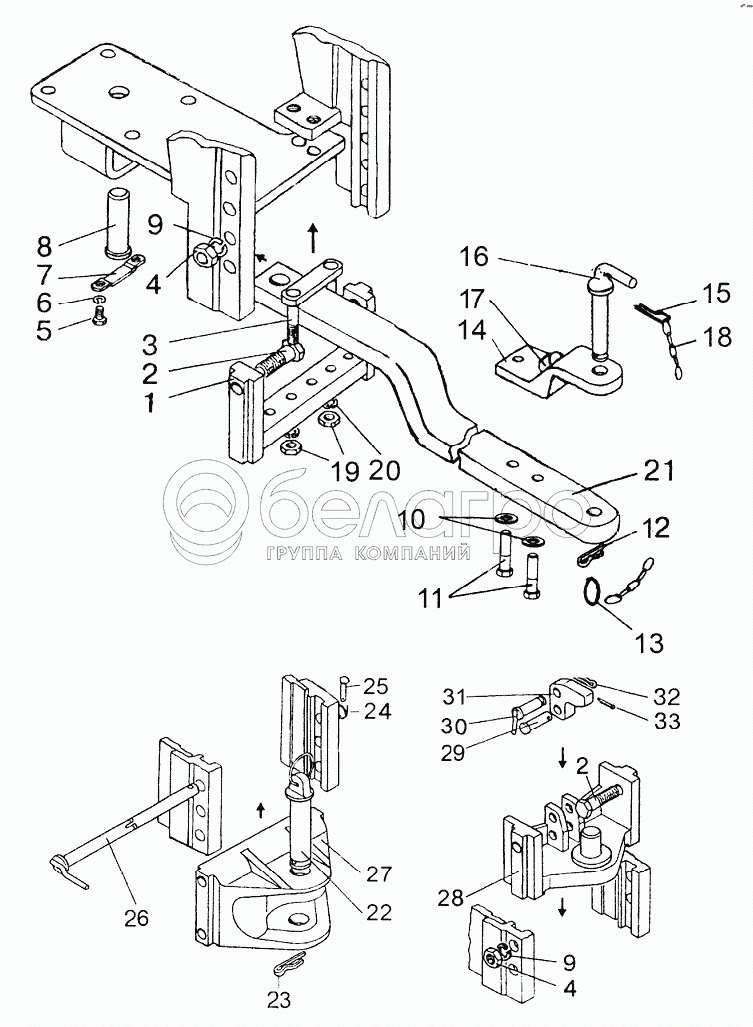 Каталог запасных частей к технике: МТЗ-1221 (2009). Тягово-сцепное устройство (варианты комплектации)