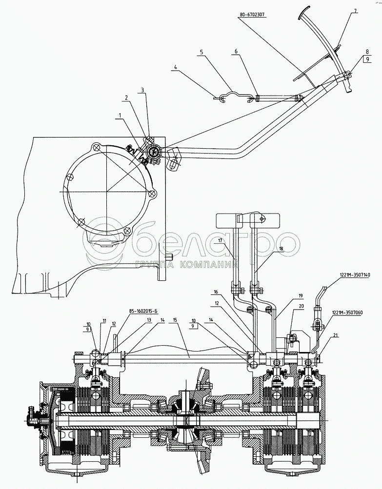 Каталог запасных частей к технике: МТЗ-1221 (2009). Управление «мокрыми» тормозами