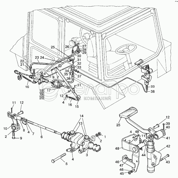 Каталог запасных частей к технике: МТЗ-1221 (2009). Управление сцеплением («БЕЛАРУС-1221В/1221В.2»)