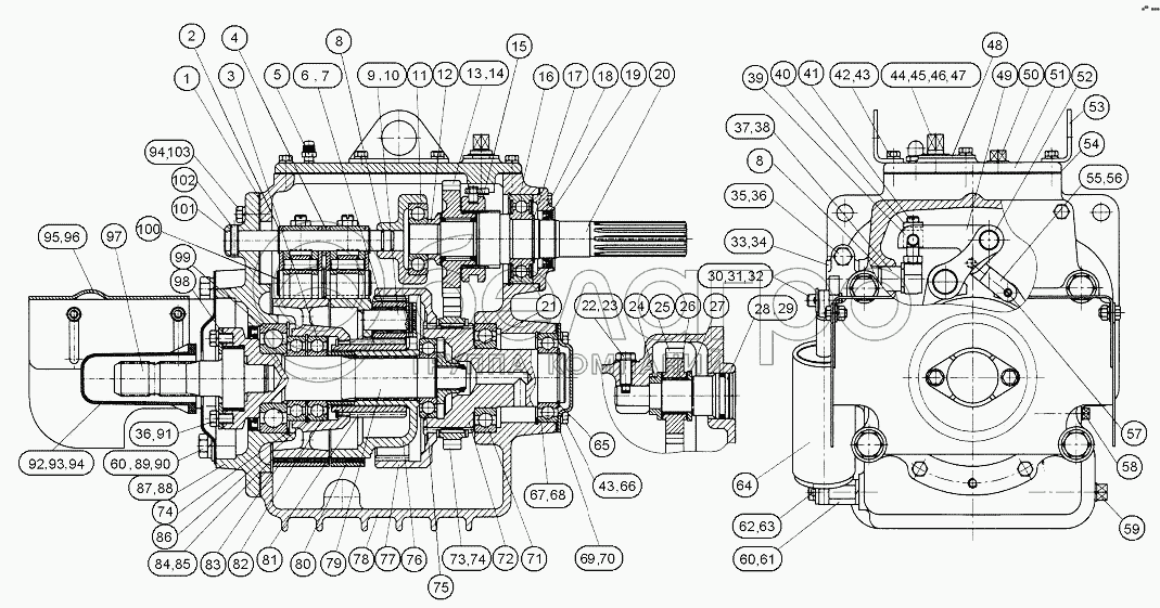 Каталог запасных частей к технике: МТЗ-1221 (2009). Вал отбора мощности передний. Редуктор
