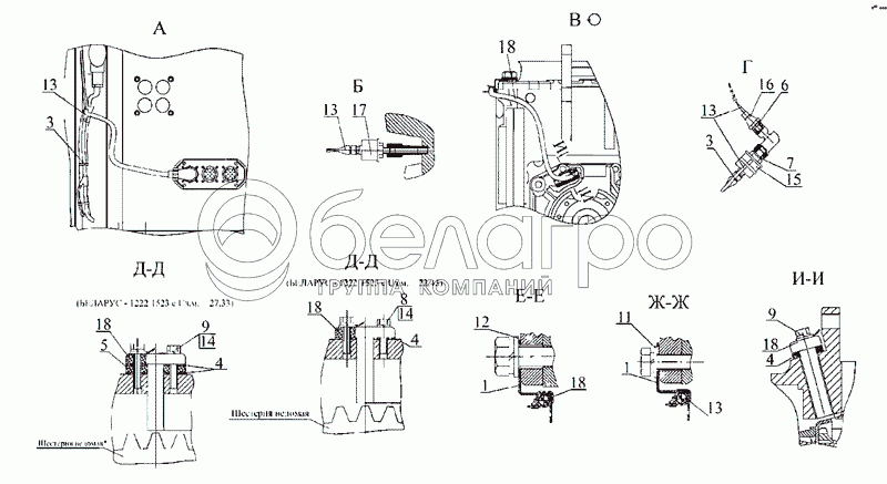 Каталог запасных частей к технике: МТЗ-1222/1523. Электрооборудование по трансмиссии