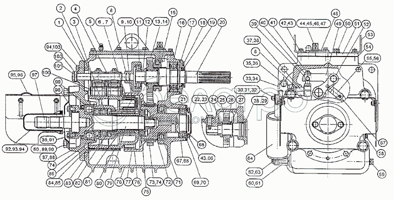 Каталог запасных частей к технике: МТЗ-1222/1523. Редуктор переднего вала отбора мощности