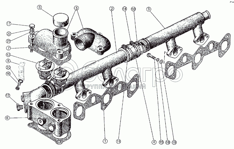 Каталог запасных частей к технике: МТЗ-1222/1523. Труба водосборная и термостаты