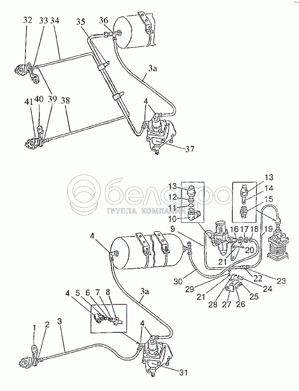Каталог запасных частей к технике: МТЗ-1222/1523. Трубопроводы и арматура пневмопривода тормозов прицепа